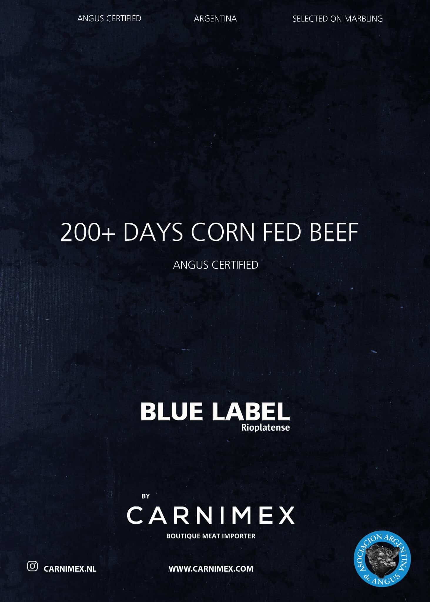 Rioplatense Blue Label is a high-end beef line, grain-fed for 200+ days to enhance marbling and tenderness.